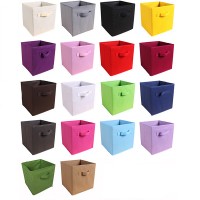 These non-woven, foldable, mini-storage baskets fold easily so that they can be stored away quickly.