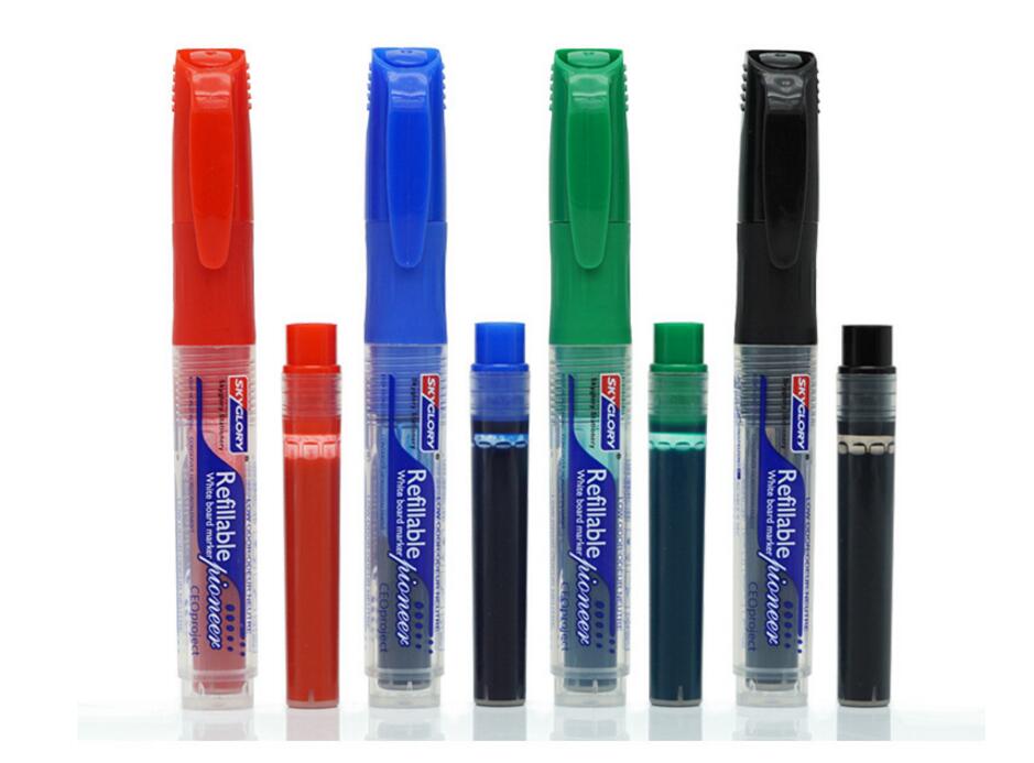 Whiteboard markers with versatile chisel tips allow for broad or fine writing.